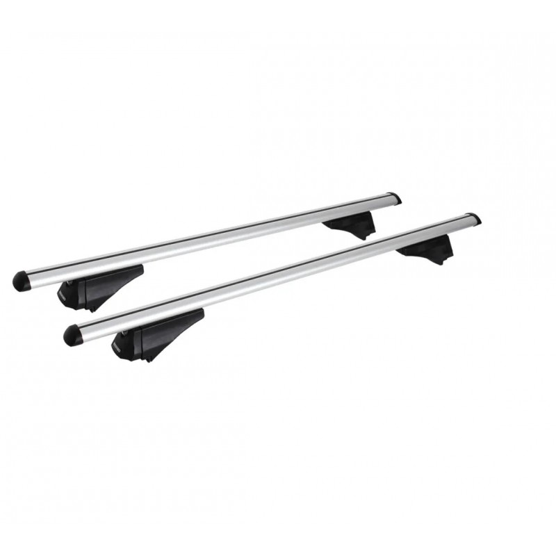 Univerzalni strešni nosilci Menabo Tiger SILVER 120 cm, srebrni eloksirani aluminij, za vozila z integriranimi strešnimi sanmi; enostavno in hitro prilegajoče, že sestavljene in pripravljeno za uporabo